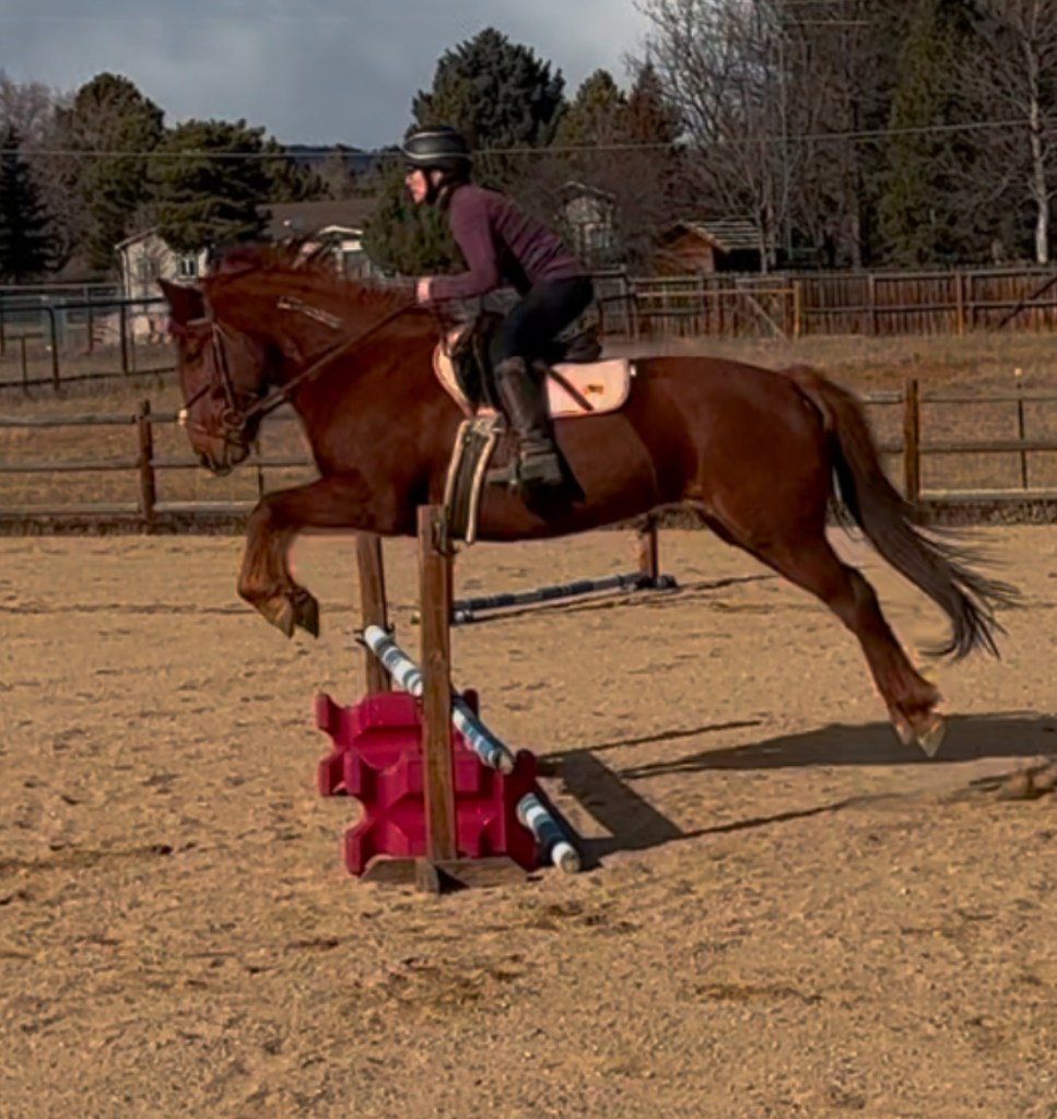 Christine Olver is a partially retired veterinary clinical pathologist who has worked as a professor at Colorado State University for 30 years. Her work stories start with “I saw this amazing cell under a microscope and it has a fungus in it and it made my day,” which she finds just as exciting as jumping out of a helicopter. Christine owns a 4 year old off the track thoroughbred named Nineteen Oysters (barn name Teeno), a fiery red 7 year old mustang mare named Brigantia (celtic goddess of healing waters, and named after my dear late friend Bridget), and a 20 year old Arabian gelding named Tango (he was my daughter’s first boyfriend).